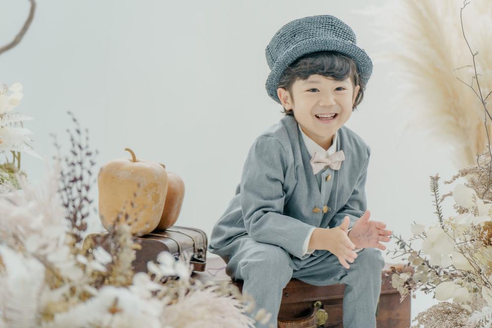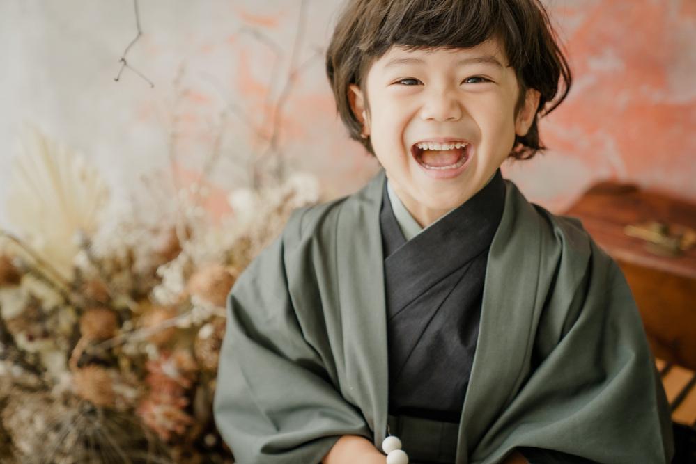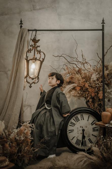 今回お子様が着用されているお着物は、全てお子様ご自身で選んだ組み合わせ!お母様からお話をお伺いしたところ、何かを決める際には普段からお子様に決めてもらっているとのことでした。この日男の子が選んだのはグレーの着物と黒の中着。大人っぽいクールな組み合わせでした!親御さんがお衣装選ばれても、もちろんOK◎しかしお子様が自身でお衣装を選べる年齢であれば、ご自身で選ばれるとより撮影を楽しんでくれるかもしれませんね♪