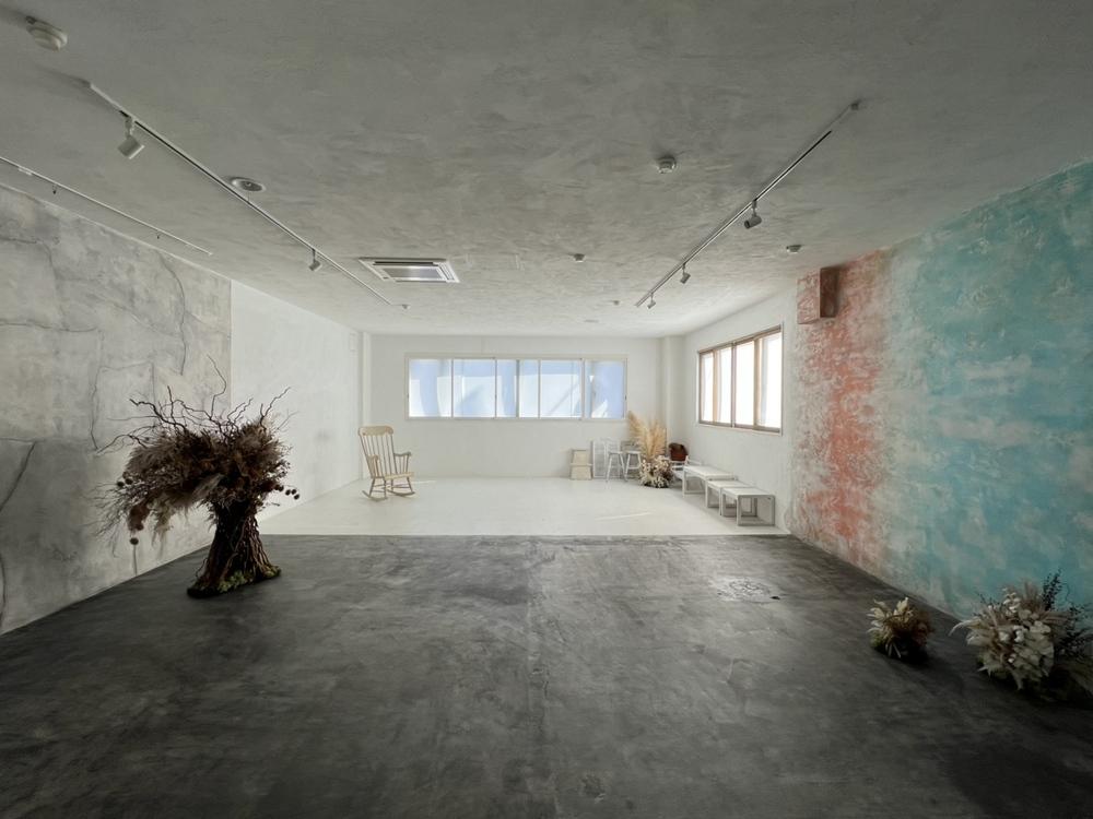 1つ目のブースは真っ白な壁と大きな窓が目を引くこちらのブース!窓を入れて開放的な印象のお写真にするもよし、窓が入らない画角で真っ白でシンプルなお写真にするもよし◎背景が白なので、衣装や小物の色を選ばないのも嬉しいポイントです。