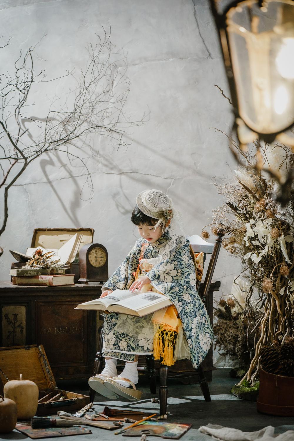 最後にご紹介するのは亀裂が入ったような柄が特徴のグレーの壁があるブース。一見すると古くて怖い印象を受けるかもしれませんが、アンティーク家具やドライフラワーを置くと、まるでそこはお話の中の世界!一気に印象が変わります◎普段の元気な印象とは打って変わって、シックな大人っぽい、かっこいいお写真が撮れますよ♪