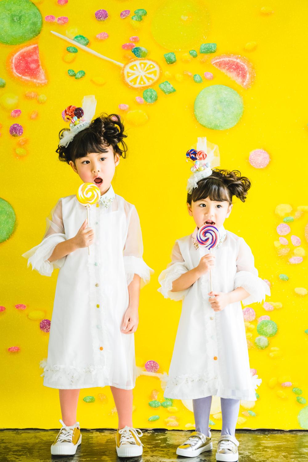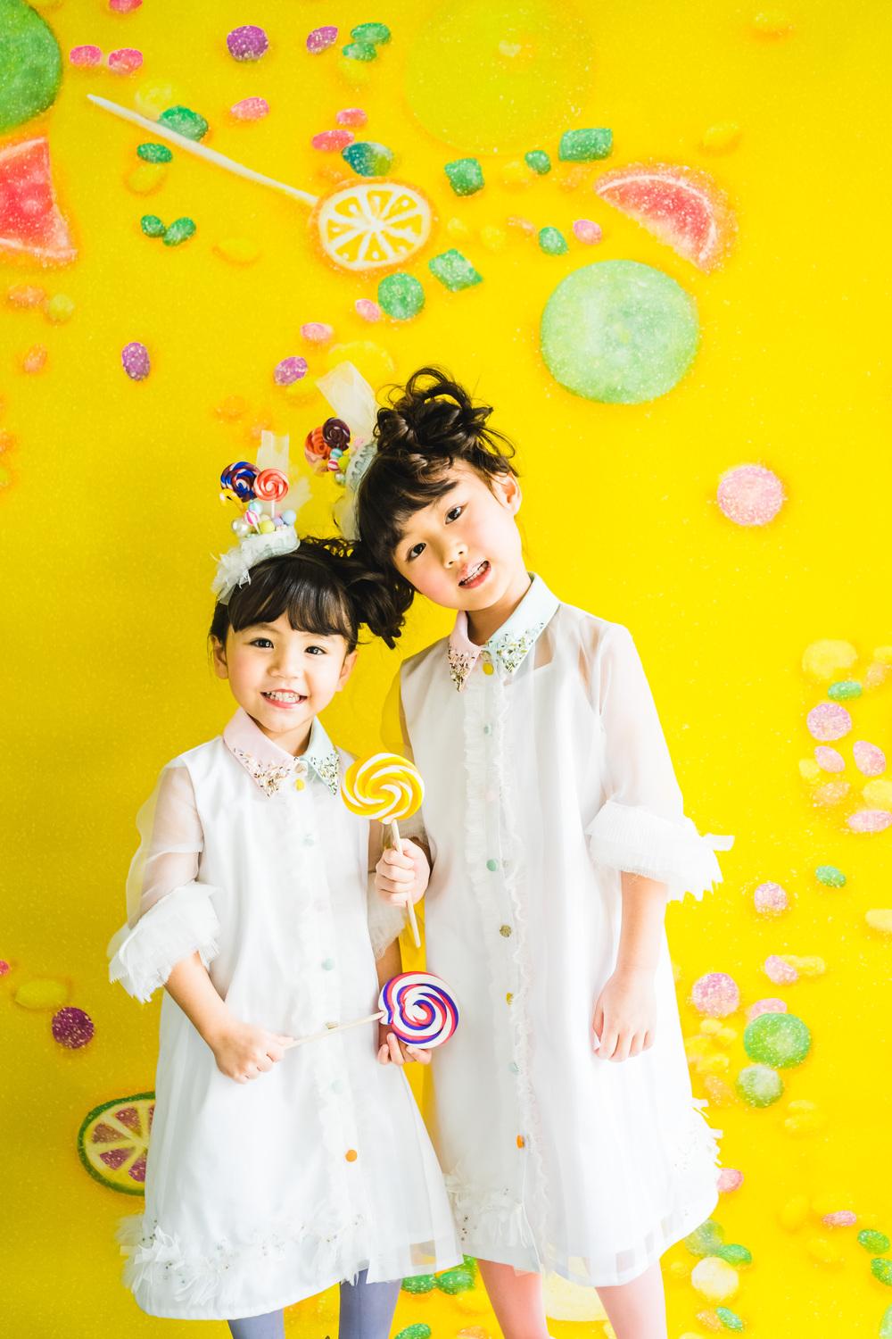 marustudio札幌といえば真っ白の空間や、アンティークな壁などナチュラル系、アンティーク系のお写真のイメージをお持ちの方も多いのではないでしょうか。しかし今回のイベントはちょっと特別!カラフルなお菓子をテーマに、明るい黄色の背景にチョコスプレーが散りばめられた衣装、キャンディーをあしらった小物やアクセサリーなどなど……。marustudio札幌としては珍しく、ビビットなお写真が楽しめるブースをご用意しています♪