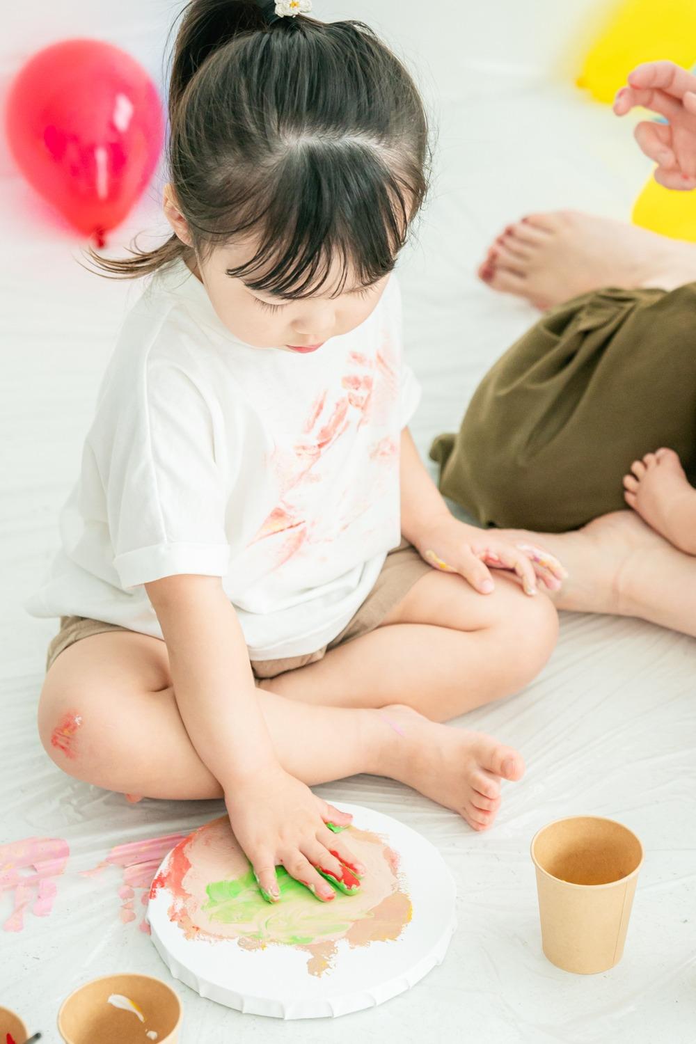 今回のイベントでは、指に絵の具をつけてキャンパスにお絵描きできる「フィンガーペイント」と、白いTシャツに豪快にお絵描きできるボディペイントの2つをご用意しました。もちろん描いた絵はお持ち帰りOK◎