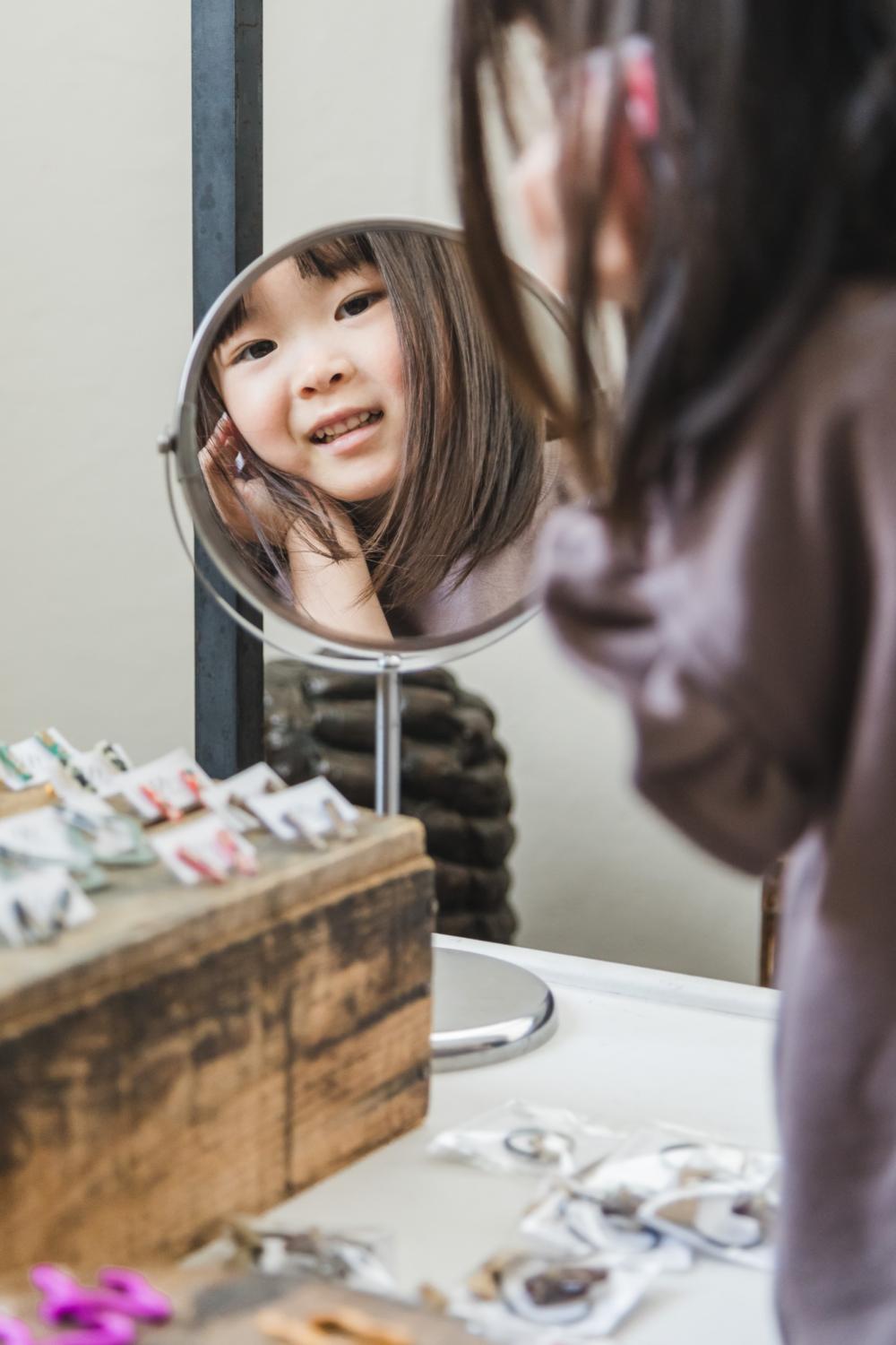 ママにはどんなピアスが似合うかな〜?と鏡の前で付けている姿にキュン♡ママのイメージはピンクかな?と考えている最中です◎好きな色で自由に組み合わせられるアクセサリーに大満足の様子です♩