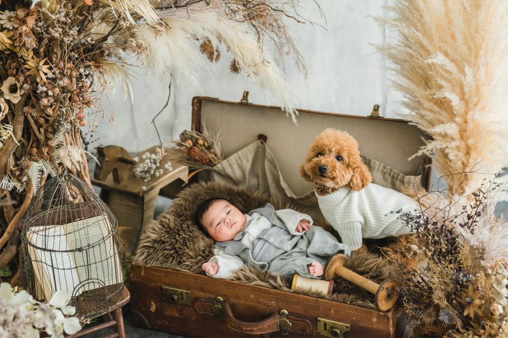 もちろん100日の撮影でもmarustudio札幌のシンボルツリーやアンティークな小物など、お子さま一人ひとりに合わせたセットを用意してトータルコーディネートをさせていただきます◎こちらのトランクモチーフが人気です^^ご希望があればぜひご相談くださいね♩