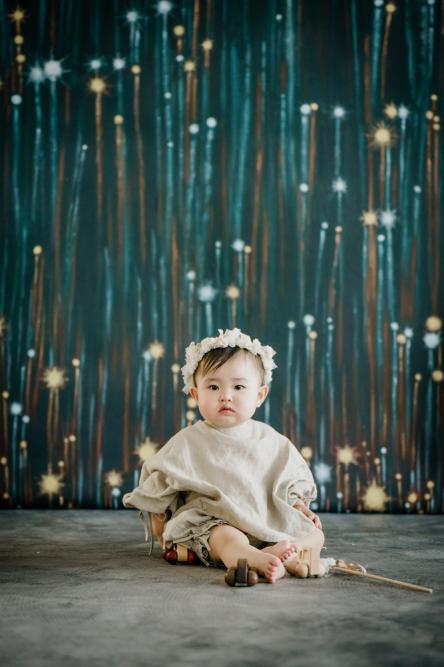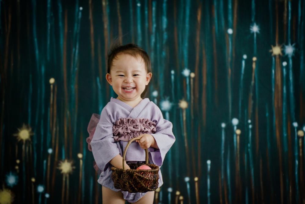 撮影に来てくれたこともある1歳の女の子。撮影に来てくれる際には、いつもおしゃれでかわいい衣装や小物を持ってきてくれます。撮影も初めてではなく、いつもニコニコで撮影できるのですが、この日は背景の花火が怖かったのかご機嫌ななめ……。休憩をしたりおもちゃで遊んだりしながら撮影しましたが、泣き顔カットがたくさん……。泣き顔が多い撮影となってしまいましたが、ママはなかなか泣き顔が見れないからと喜んでくれたので結果オーライ◎