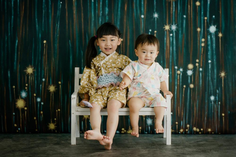 1歳の弟くんと5歳のお姉ちゃんの姉弟もきてくれ、兄弟フォトも撮れました。短冊に「おおきくなりたい」とお願い事を書いていたお姉ちゃんは、星のスティックを持ってきてくれ、このスティックが撮影でも大活躍!スティックで顔を隠したりポーズを取ってくれたり飛んだり跳ねたり、撮影を楽しんでくれました◎仲良し姉弟を収めた素敵な一枚も!気ままな弟くんと、そんな弟くんの面倒をしっかりみてくれる笑顔がかわいいお姉ちゃん。素敵なお二人でした!