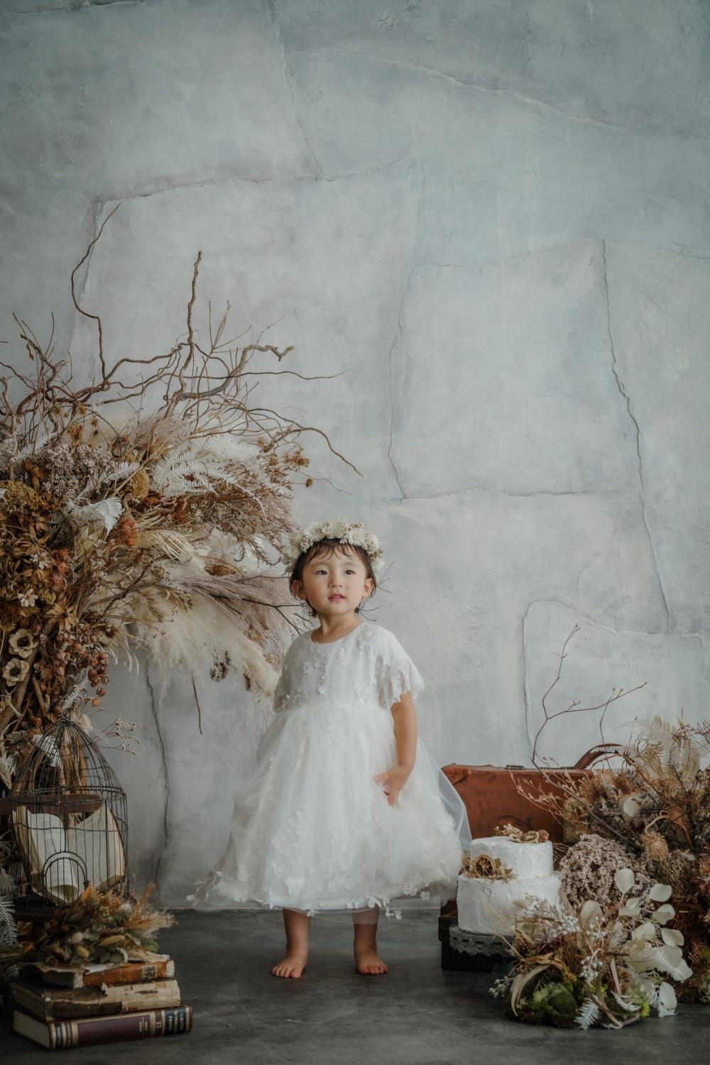 シックでアンティーク調のグレーの壁では、marustudio札幌のシンボルツリーが印象的でアンティークな雰囲気になりますよ♩ドレスやタキシードだけでなく、七五三のお着物にもピッタリな世界観を創っています◎少しおすましした表情なども似合いますね〜^^