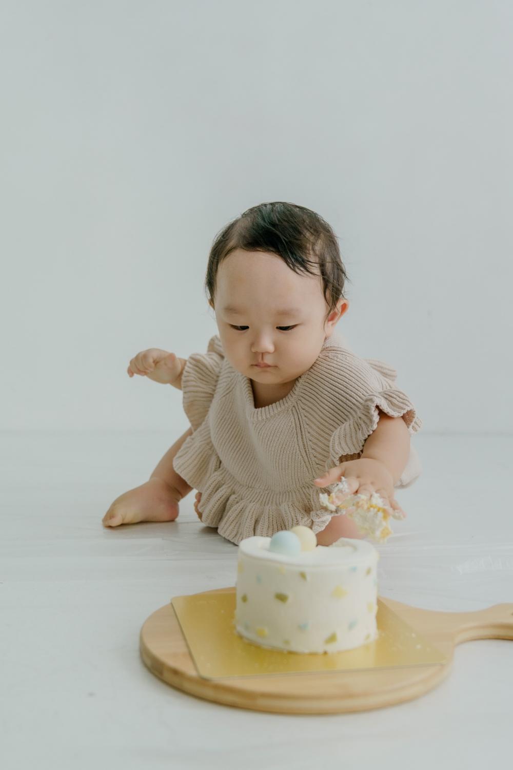 初めてのスマッシュケーキを豪快に触ってそのまま『あむ〜♡』と美味しそうに食べる姿も可愛いです^^カボチャが大好きということで、甘ーいカボチャに大満足の様子でした♩