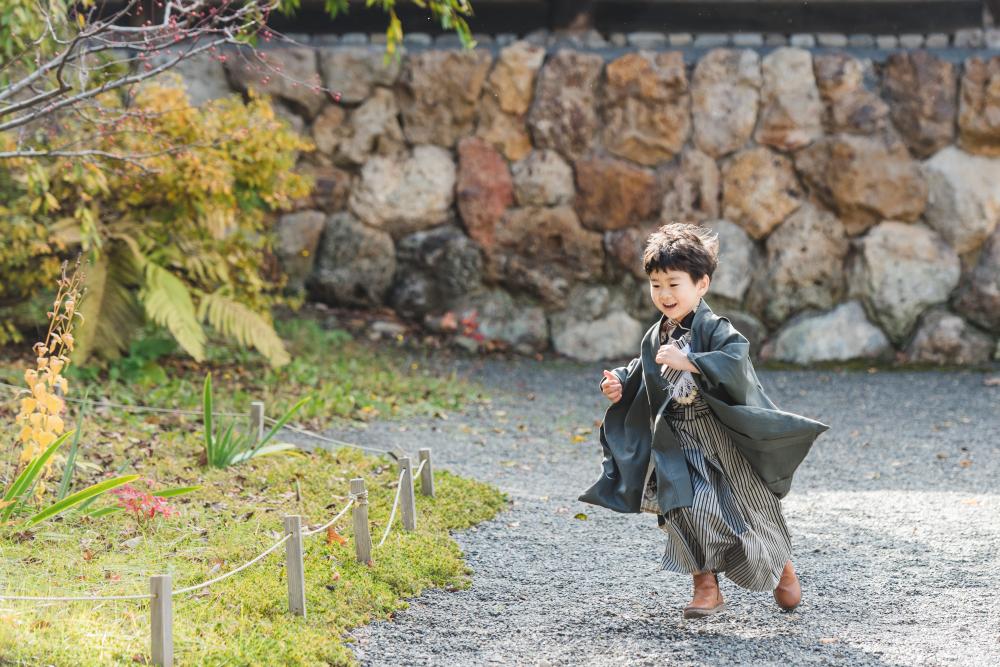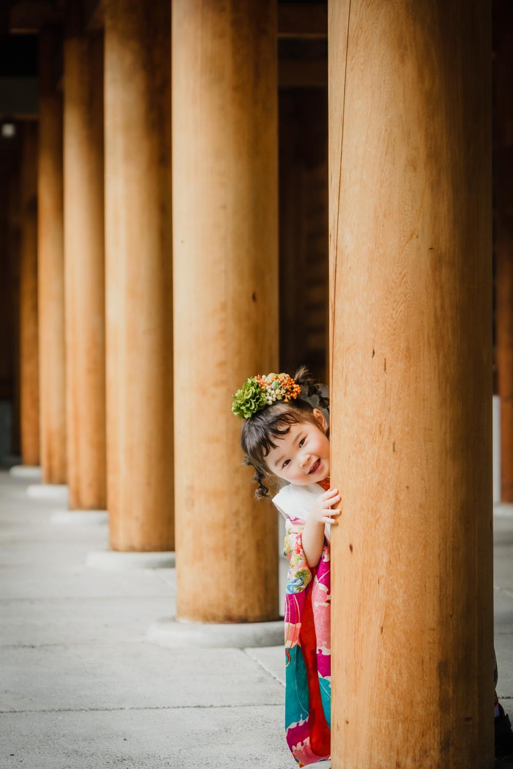 神社でのロケーション撮影では、ご祈祷をした後に隠れんぼをしたり遊びながら元気いっぱいな姿を残すことができます^^♩お外は開放感があってスタジオとはまた違うお写真になりますよ〜!
