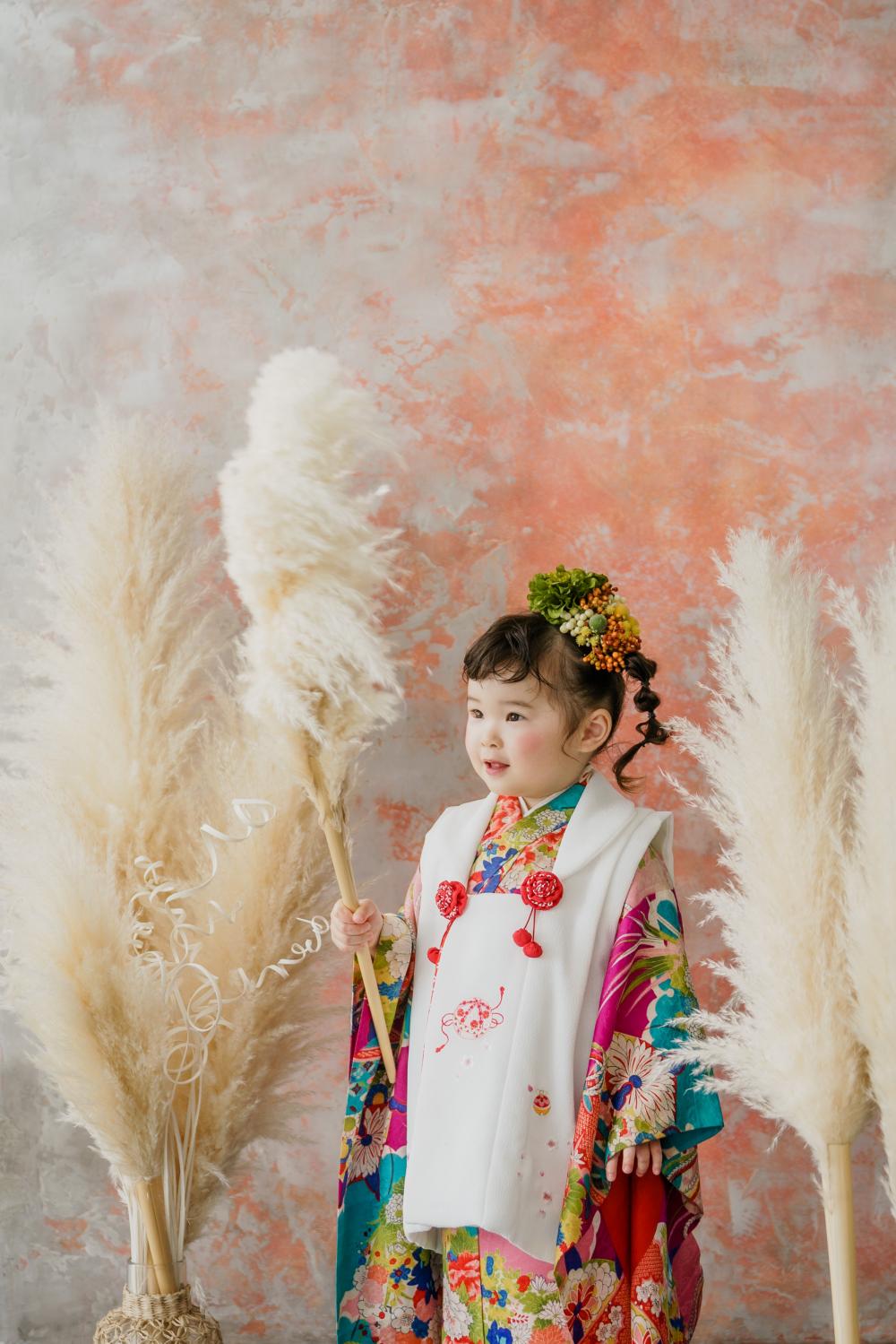 スタジオでは753撮影ならではの傘や飴などの小物もご用意しています^^お子さまひとり一人に合わせたセットも組ませていただくので、他にはない世界観でお写真を残すことができますよ♩