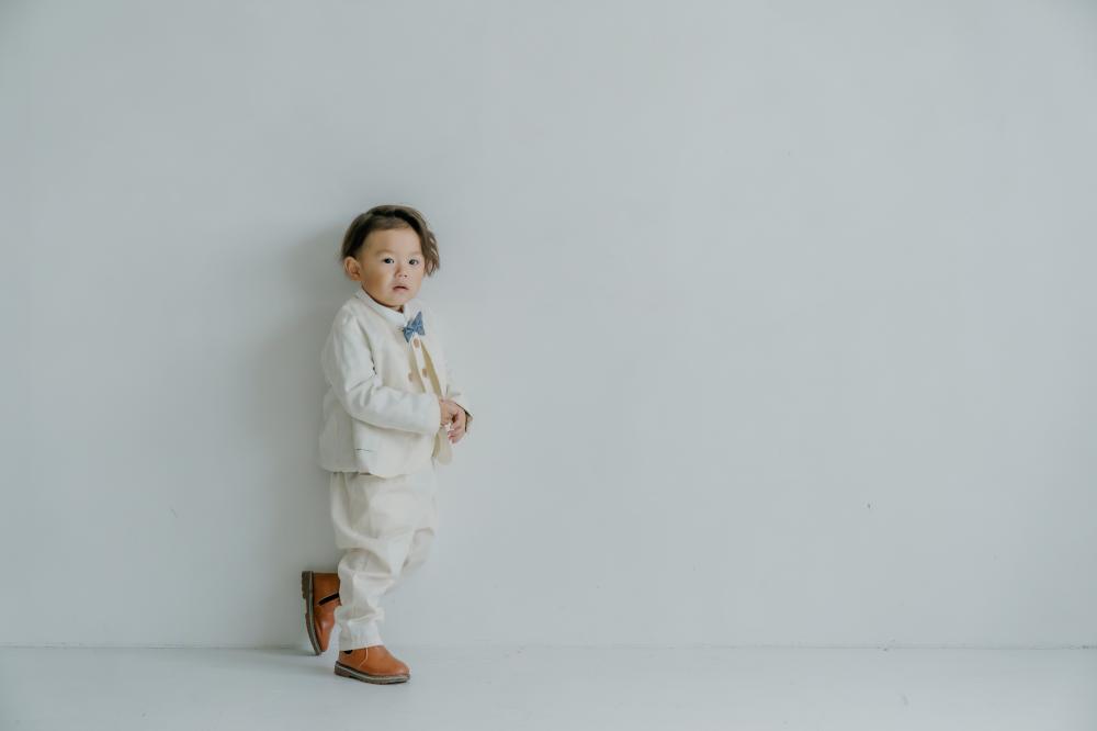 白と背景紙の2パターンの他にオプションでグレー背景でも撮影可能なので、いろいろな雰囲気でお写真を残したい方はぜひチェックしてみてくださいね^^お子さまのソロカットだけでなく、ご家族撮影もさせていただきますのでお揃いで色味やコーディネートなどを合わせた服装もオススメです♩