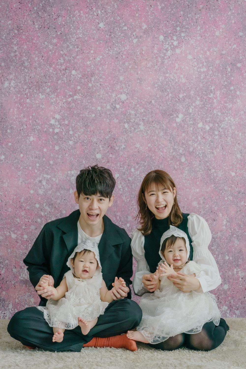 お子さまメインのお写真だけでなく、パパ・ママ、ご家族一緒の撮影もさせていただきますので、お揃いのお衣装などトータルコーディネートがおすすめです♩