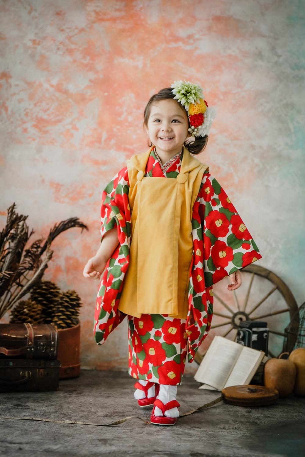 七五三のスタジオ撮影。いつもとは違うセットでプロカメラマンが撮影する写真はそれだけで特別です。ですがせっかくなら、もうワンランクより思い出に残る写真にするために、スタジオオリジナルの衣装をレンタルするのはいかがでしょうか!?今回は七五三におすすめな3歳のお子様向けのお着物をご紹介します!