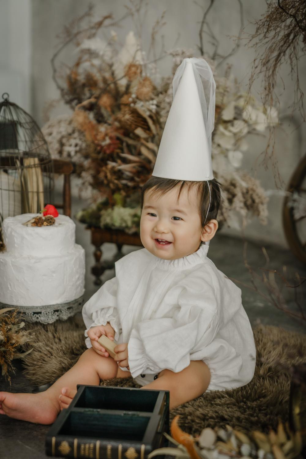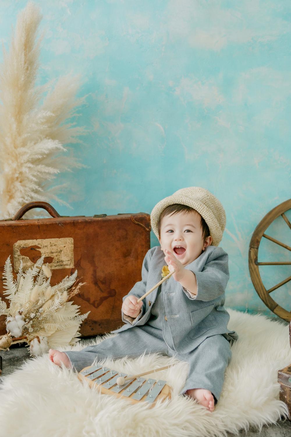 お子さまのお誕生日撮影では、クレイケーキを用意して一緒にお祝いさせていただきます^^美味しそうなケーキを前にスプーンを持って食べる真似っこをする姿はパパママも思わずにっこりしちゃいますね♩小さい頃から大事にしているお気に入りのぬいぐるみや、ファーストシューズなど思い出のアイテムと一緒に撮影もできるので、ご相談くださいね♡
