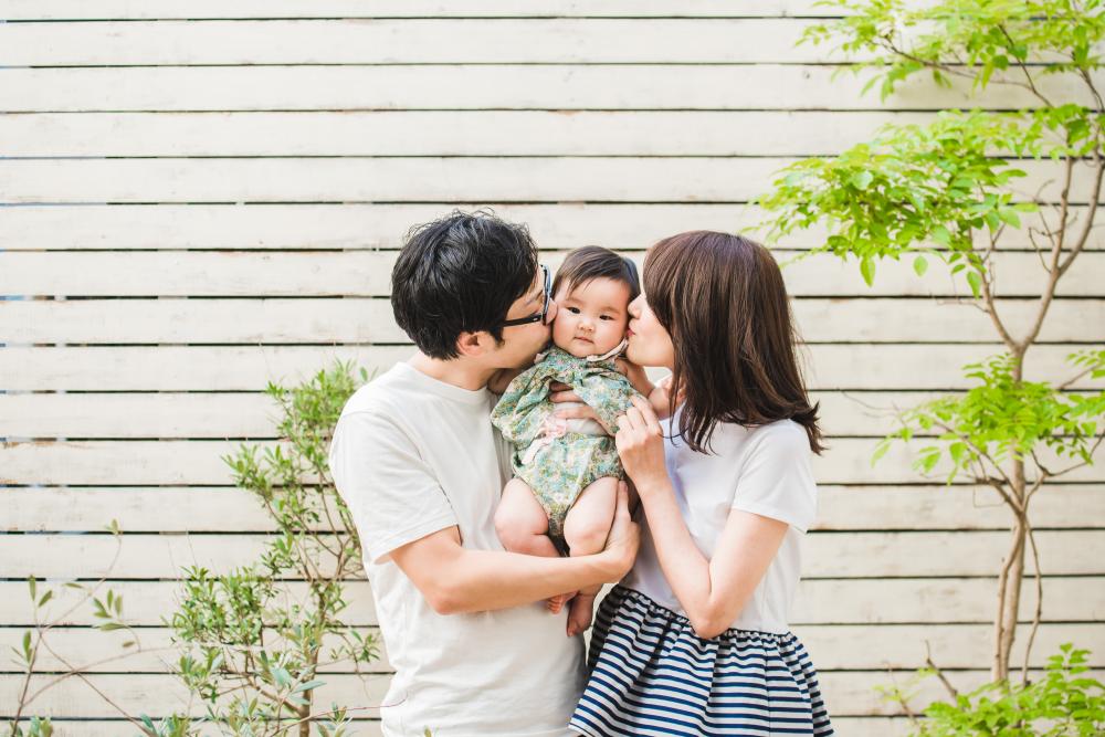 お庭にてみんなで撮影!ほっぺにチュッ♡