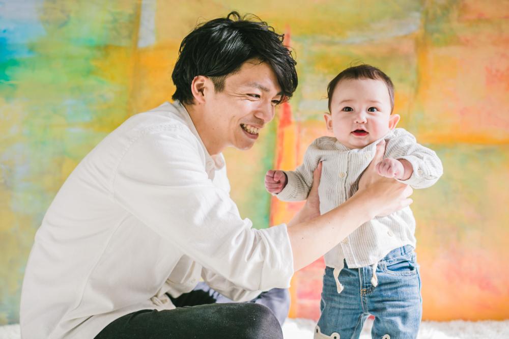 パパと一緒に♩男の子に人気のオレンジ色の背景で^^